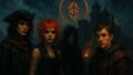 ※舞台は、雨に濡れた黒い城砦。鋼の月明かりが差し、遠くで太鼓のようなドラムの轟きが鳴る。