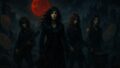 (漆黒の空に裂け目が走り、塔の上で雷鳴が唸る。鉄錆びた月光、瓦礫の城壁。ダークファンタジーの荒野を、四人は進む。Rahabは風に翻るトレンチを押さえ、Mokaはギターケースを背負い、Rachelはだるそうに煙草を弄び、Johnは祈りの数珠を指に絡める。)